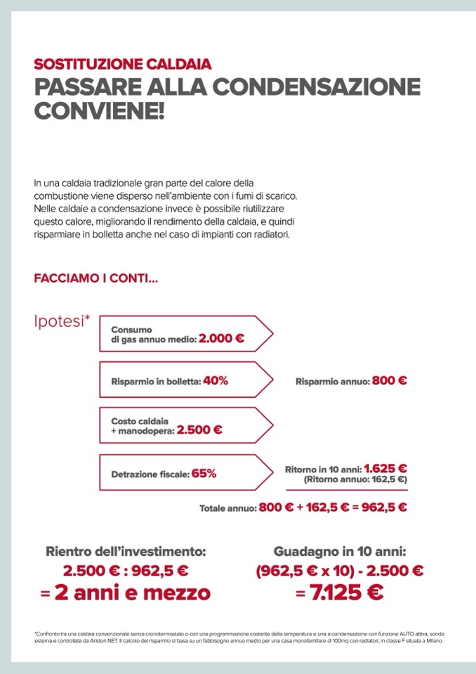 esterna e controllata da Ariston NET. Il calcolo del risparmio si basa su un fabbisogno annuo medio per una casa monofamiliare di 100mq con radiatori, in classe F situata a Milano.