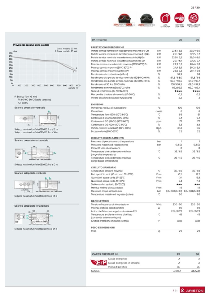 Sviluppo massimo fumi/aria Ø80/125: fino a 36 m