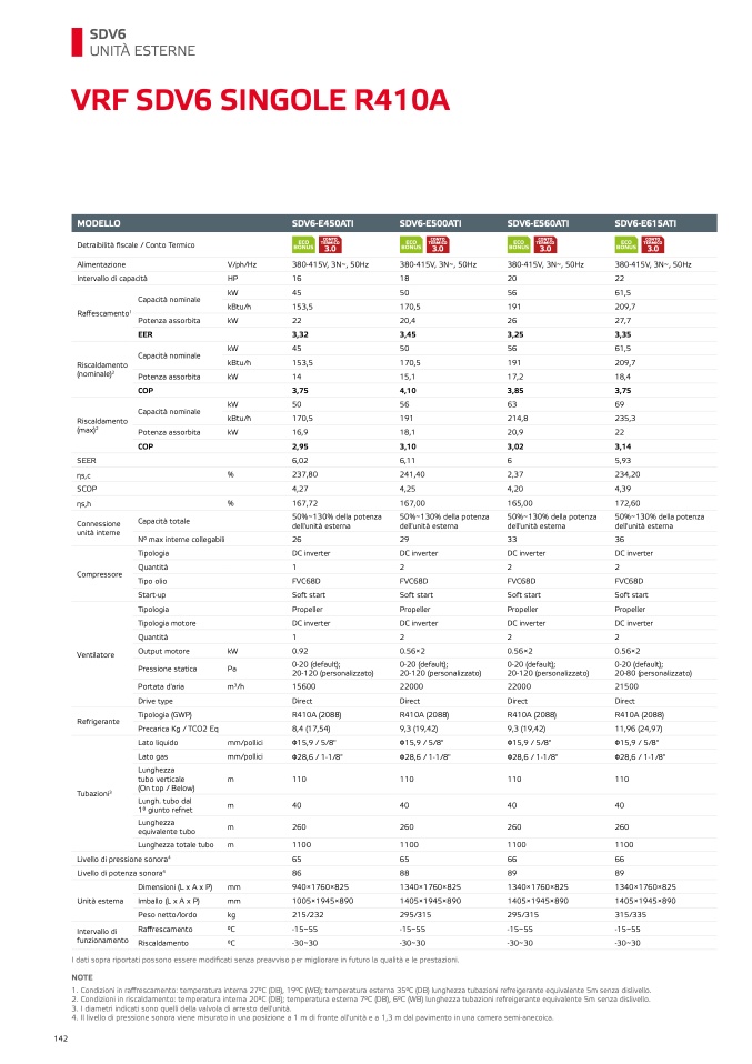 ffrescamento: temperatura interna 27°C (DB), 19°C (WB); temperatura esterna 35°C (DB) lunghezza tubazioni refreigerante equivalente 5m senza dislivello.