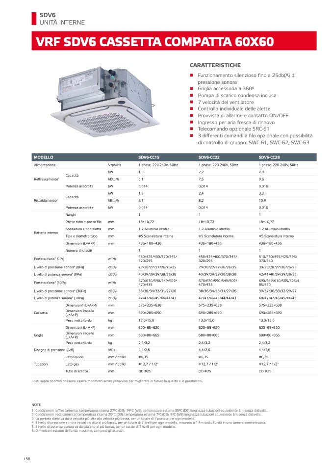 1. Condizioni in raffrescamento: temperatura interna 27°C (DB), 19°C (WB); temperatura esterna 35°C (DB) lunghezza tubazioni equivalente 5m senza dislivello.