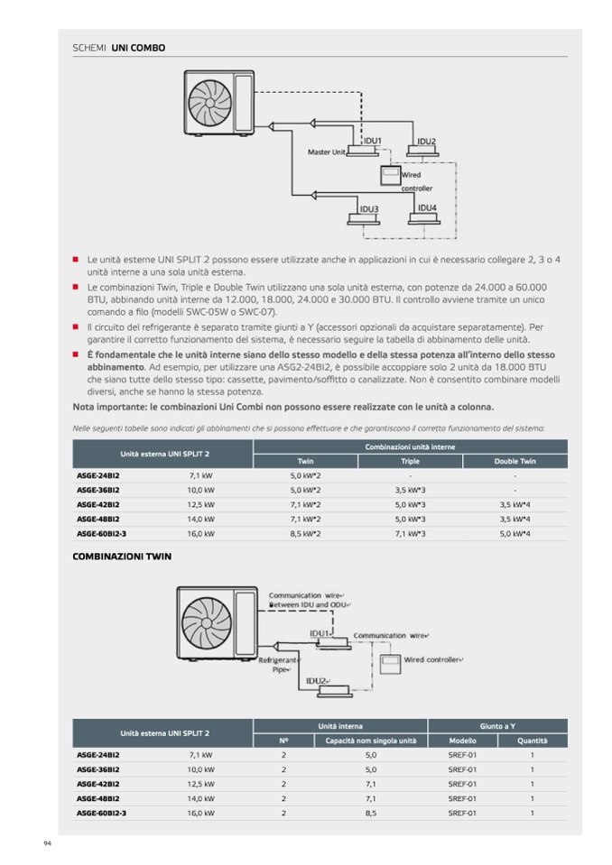 abbinamento. Ad esempio, per utilizzare una ASG2-24BI2, è possibile accoppiare solo 2 unità da 18.000 BT