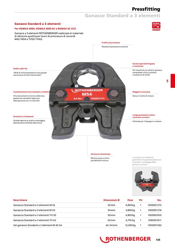 Ganasce a 3 elementi ROTHENBERGER realizzate in materiale