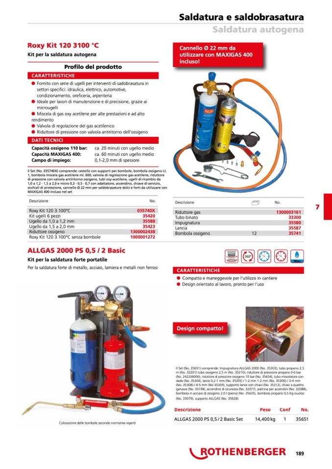m (No. 32201) tubo ossigeno 2,5 m (No. 35210), riduttore di pressione propano 0-6 bar