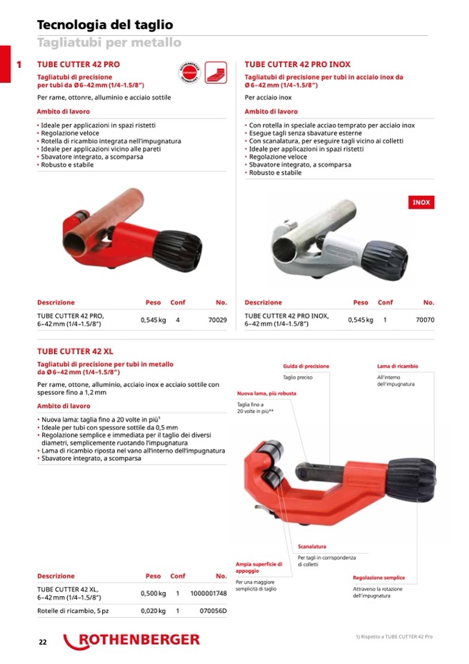 1) Rispetto a TUBE CUTTER 42 Pro