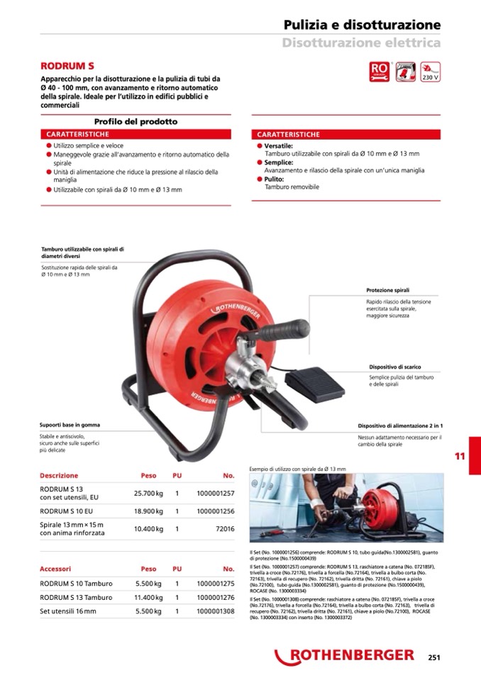 Il Set (No. 1000001256) comprende: RODRUM S 10, tubo guida(No.1300002581), guanto