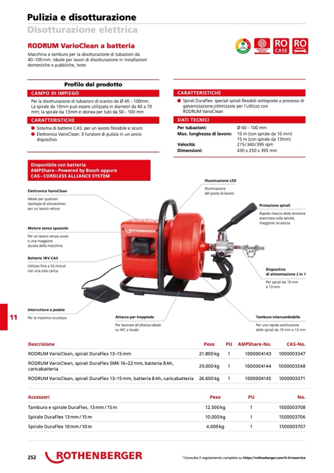 RODRUM VarioClean, spirali DuraFlex 13–15 mm, batteria 8 Ah, caricabatteria