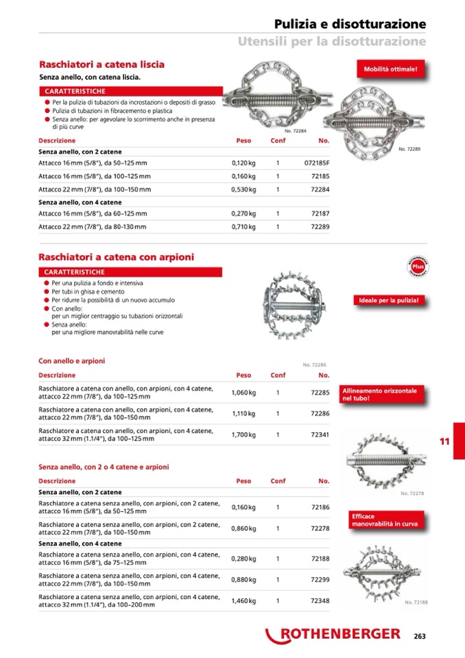 Raschiatore a catena senza anello, con arpioni, con 2 catene,