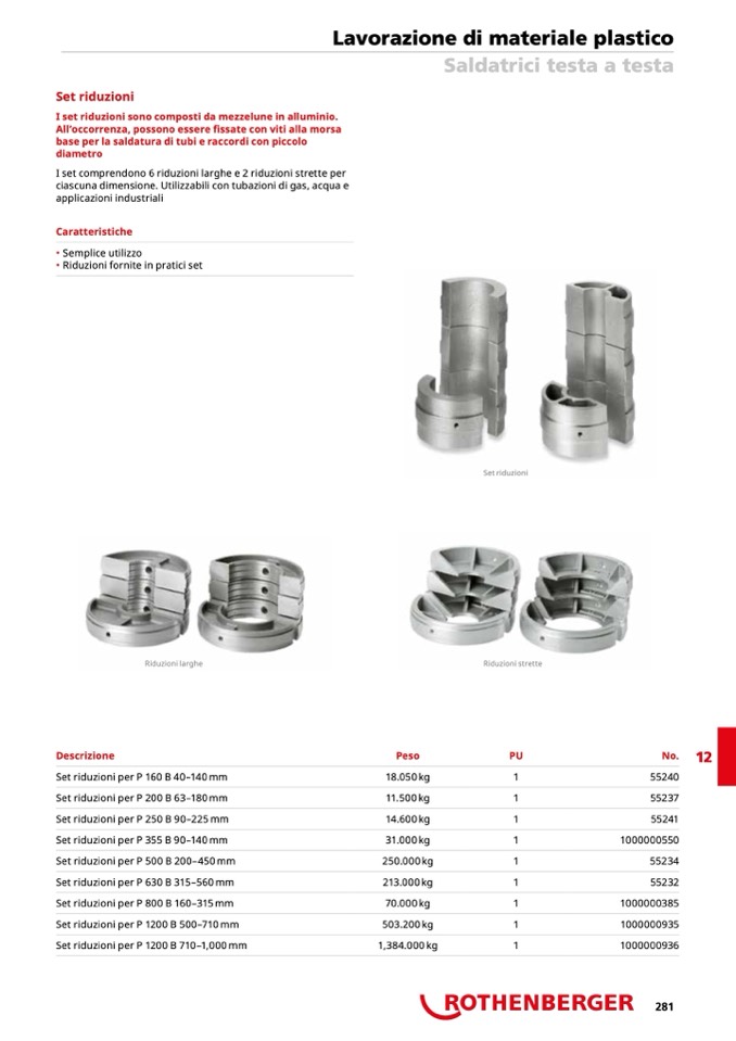 I set riduzioni sono composti da mezzelune in alluminio.