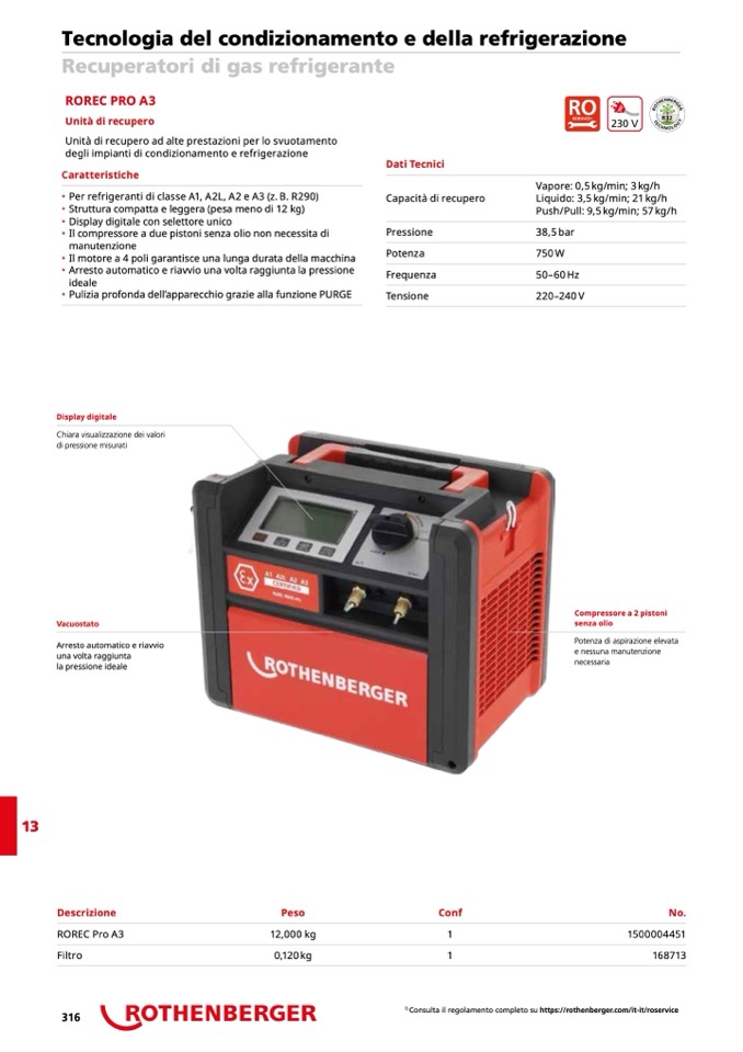 Consulta il regolamento completo su https://rothenberger.com/it-it/roservice