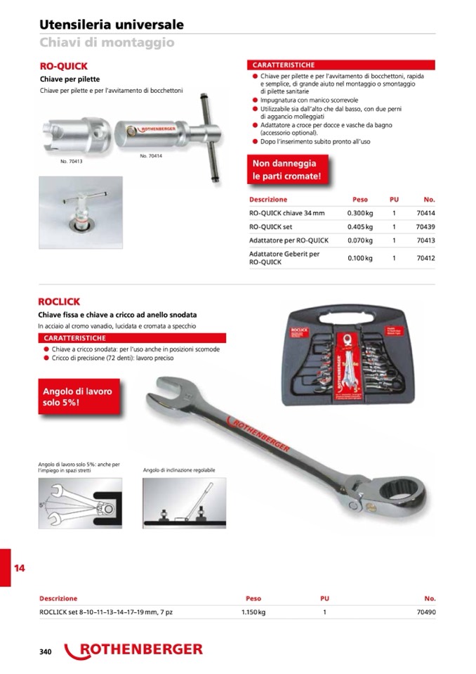 Chiave per pilette e per l’avvitamento di bocchettoni, rapida