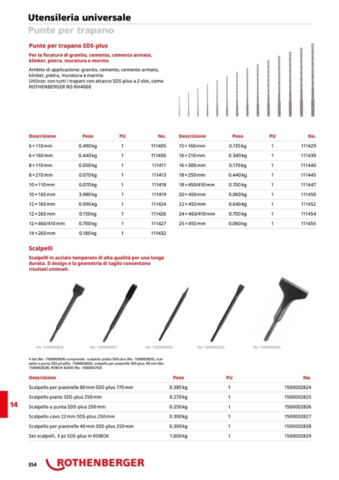 Utilizzo: con tutti i trapani con attacco SDS-plus a 2 slot, come