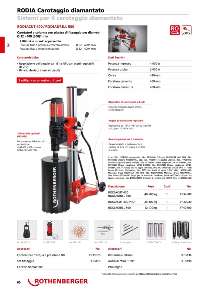 FF40400) Motore RODIADRILL 500, (No. FF70001) valigetta utensili, (No. FF70019N)