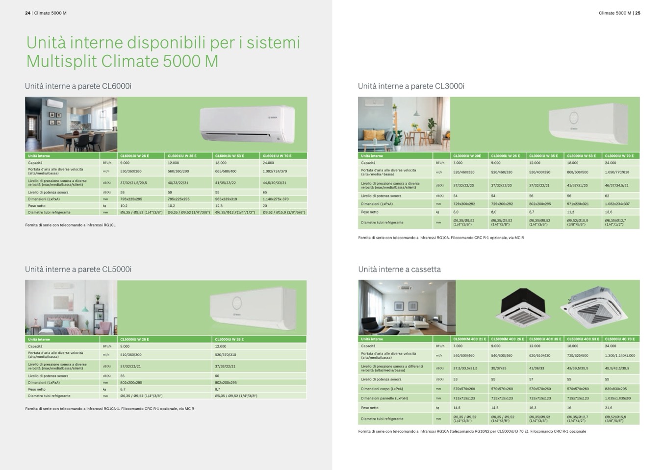 Fornita di serie con telecomando a infrarossi RG10A-1. Filocomando CRC R-1 opzionale, via MC R