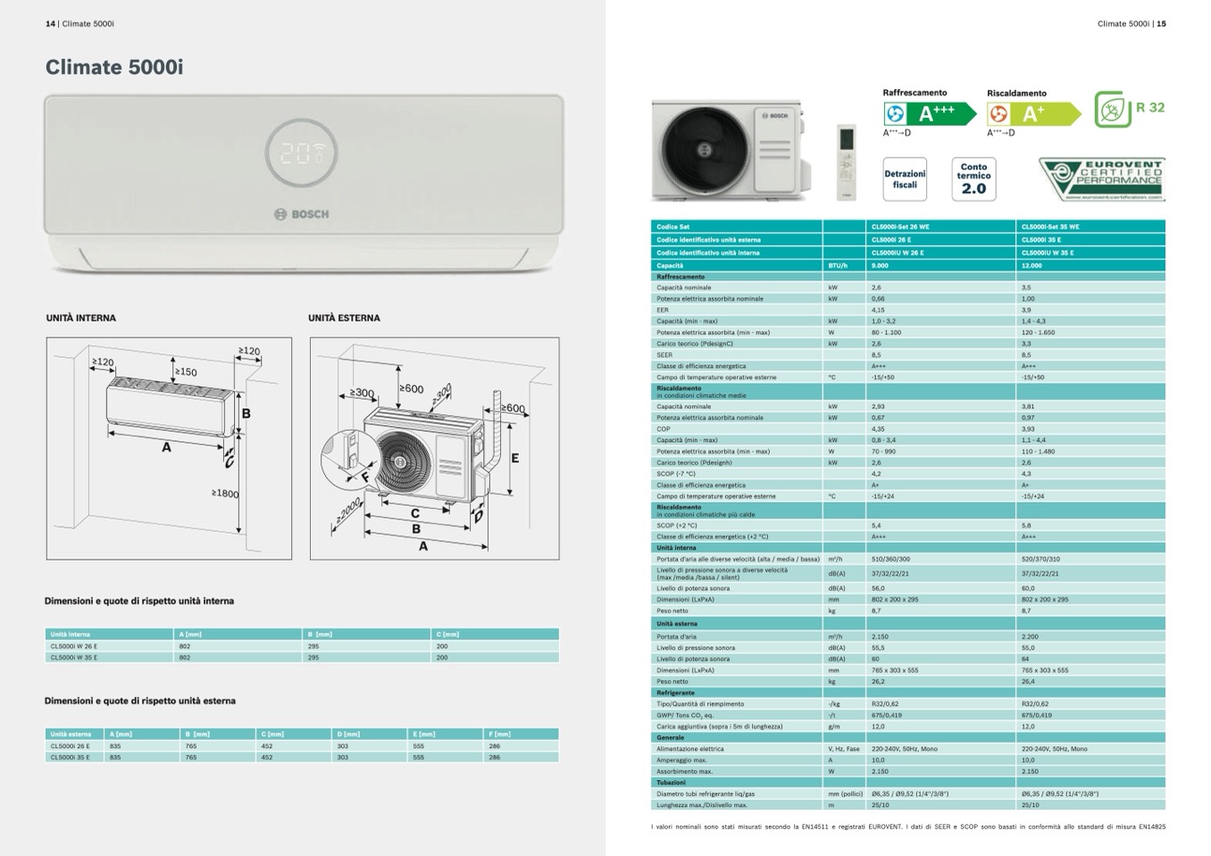 I valori nominali sono stati misurati secondo la EN14511 e registrati EUROVENT. I dati di SEER e SCOP sono basati in conformità allo standard di misura EN14825