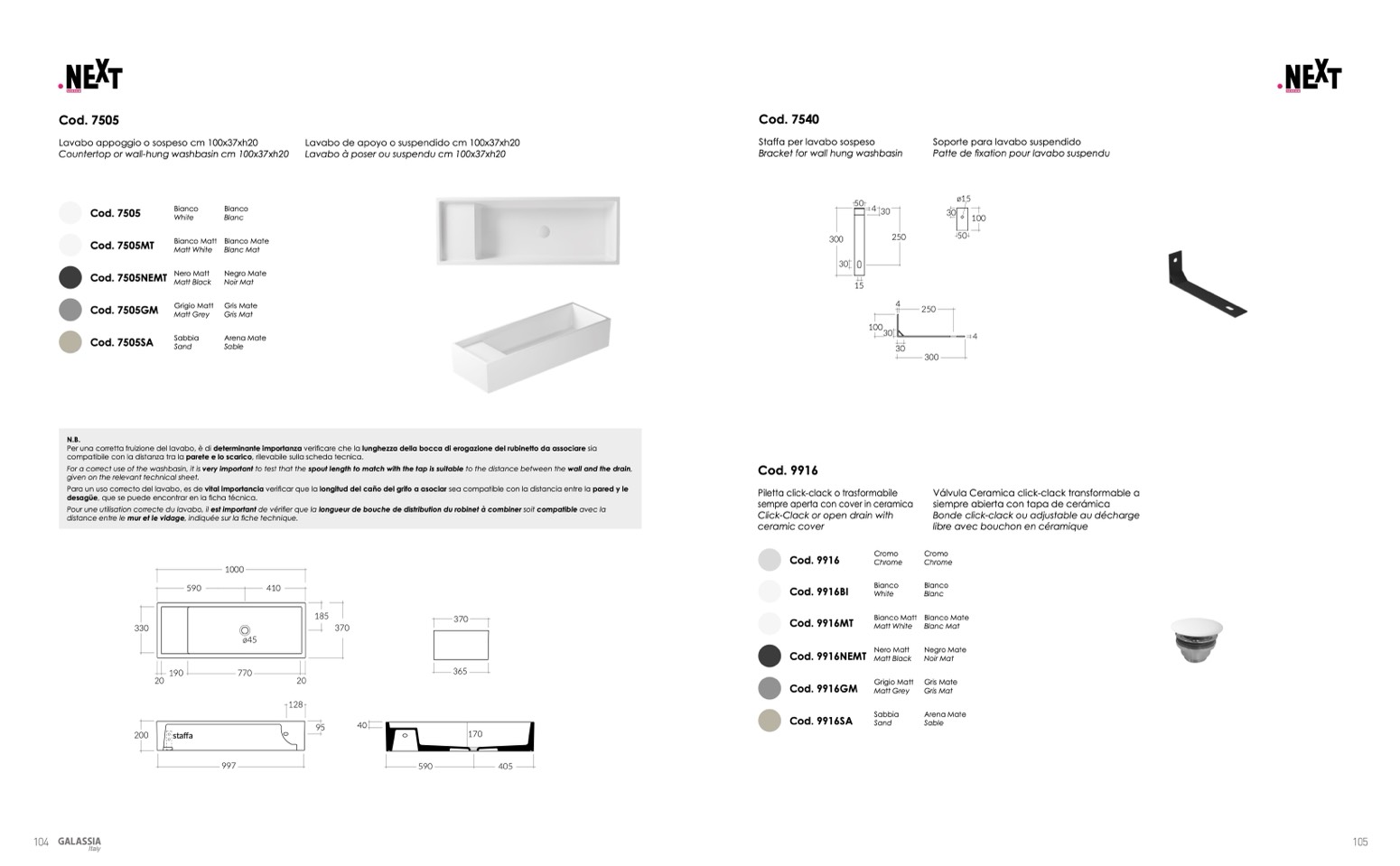 For a correct use of the washbasin, it is very important to test that the spout length to match with the tap is suitable to the distance between the wall and the drain,