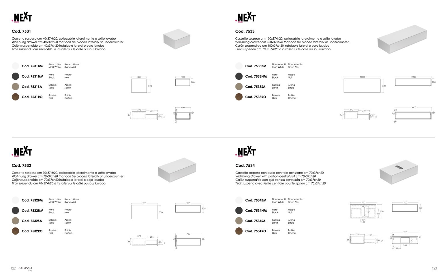 Wall-hung drawer with syphon central slot cm 70x37xh20