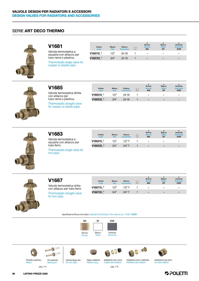 Specificare la finitura nel codice / Specify the finishing on the code es./ex.: V168110EG