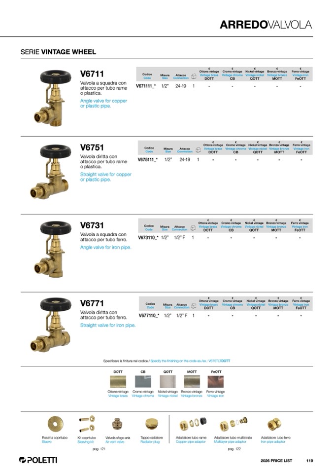 finitura nel codice / Specify the finishing on the code es./ex.: V675TLTDOTT