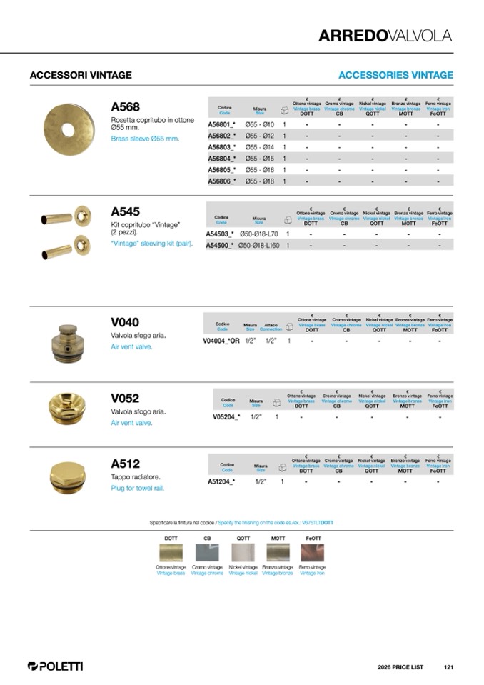 finitura nel codice / Specify the finishing on the code es./ex.: V675TLTDOTT