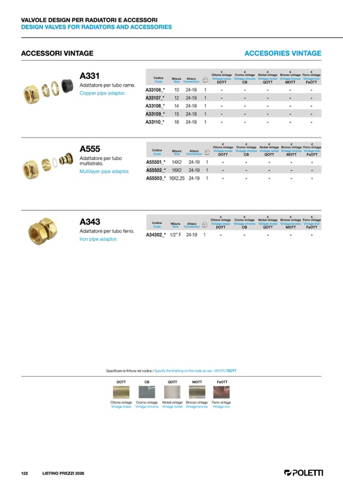 finitura nel codice / Specify the finishing on the code es./ex.: V675TLTDOTT