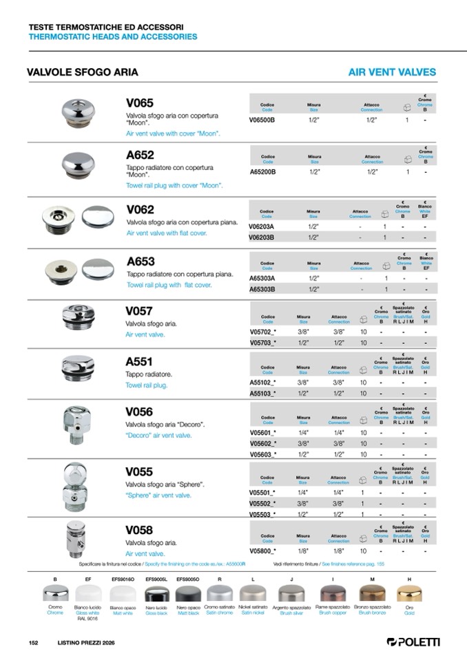 Specificare la finitura nel codice / Specify the finishing on the code es./ex.: A55600R