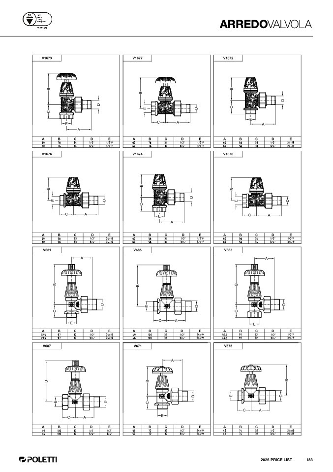 2026 PRICE LIST