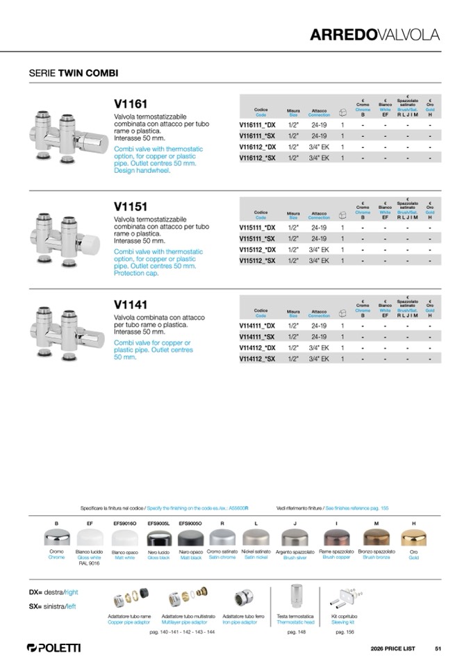 finitura nel codice / Specify the finishing on the code es./ex.: A55600R