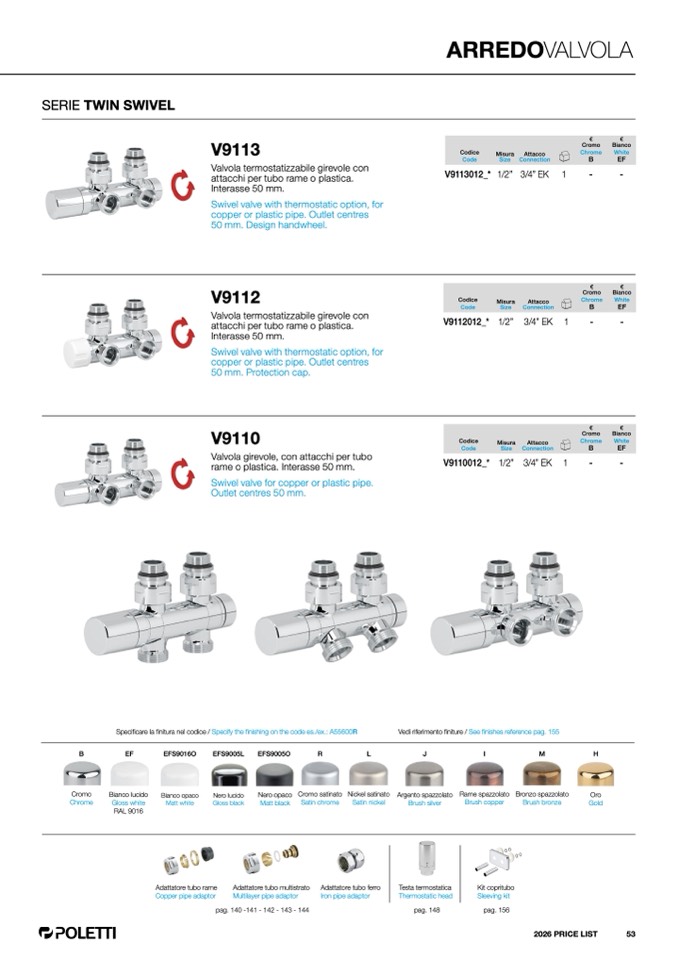 finitura nel codice / Specify the finishing on the code es./ex.: A55600R