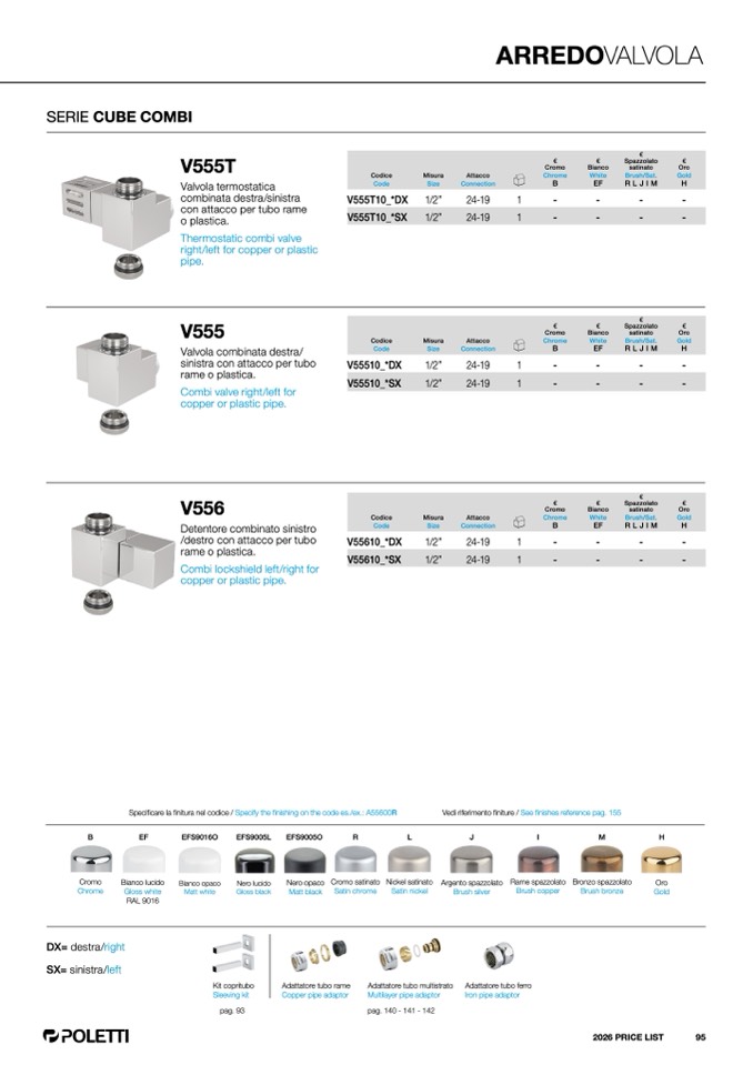 finitura nel codice / Specify the finishing on the code es./ex.: A55600R