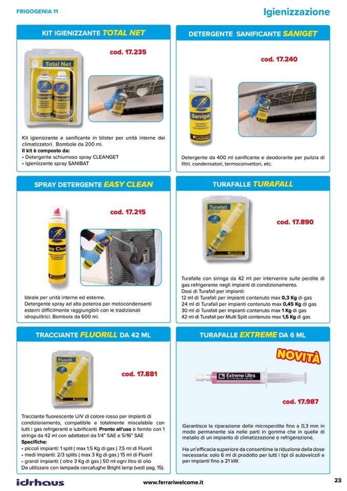 • medi impianti: 2/3 splits ( max 3 Kg di gas ) 15 ml di Fluoril