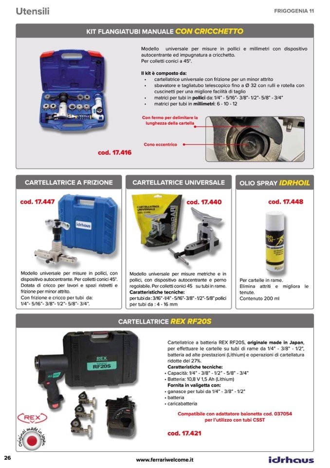 per effettuare le cartelle su tubi di rame da 1/4” - 3/8” - 1/2”,