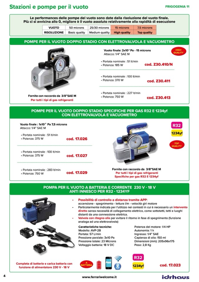 POMPE PER IL VUOTO DOPPIO STADIO SPECIFICHE PER GAS R32 E 1234yf