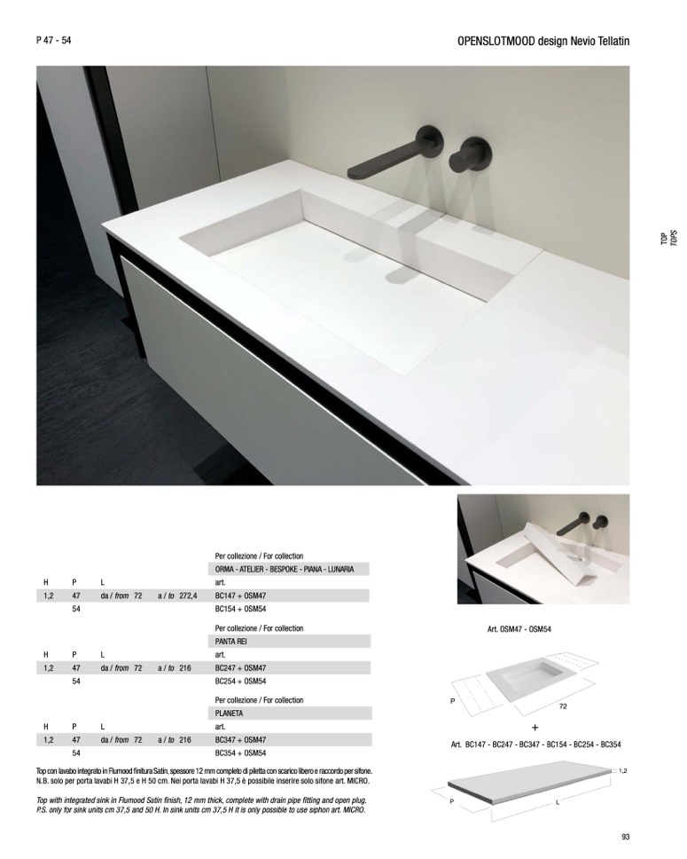 P.S. only for sink units cm 37,5 and 50 H. In sink units cm 37,5 H it is only possible to use siphon art. MICRO.