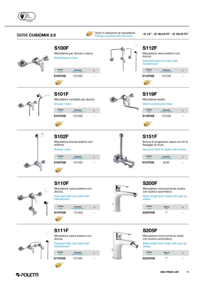 : G 1/2” - Ø 18x19 Fil” - Ø 19x19 Fil”