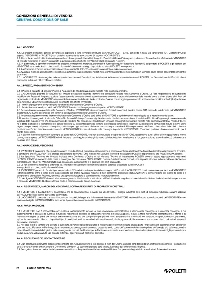 www.poletti.it e in ciascuna Conferma d’Ordine.