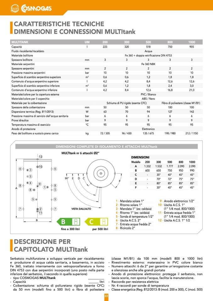 DIMENSIONI COMPLETE DI ISOLAMENTO E ATTACCHI MULTItank