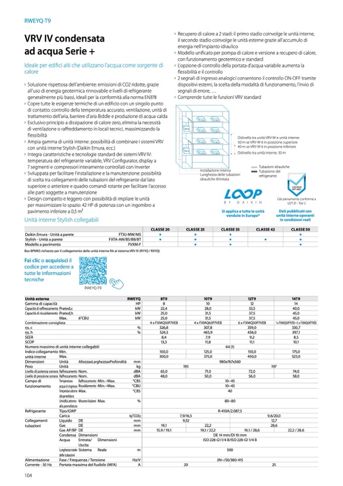 ʯ Ampia gamma di unità interne: possibilità di combinare i sistemi VRV