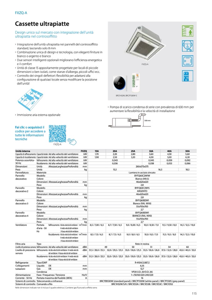 Nelle dimensioni indicate non è incluso il quadro elettrico | Contiene gas fluorurati a effetto serra