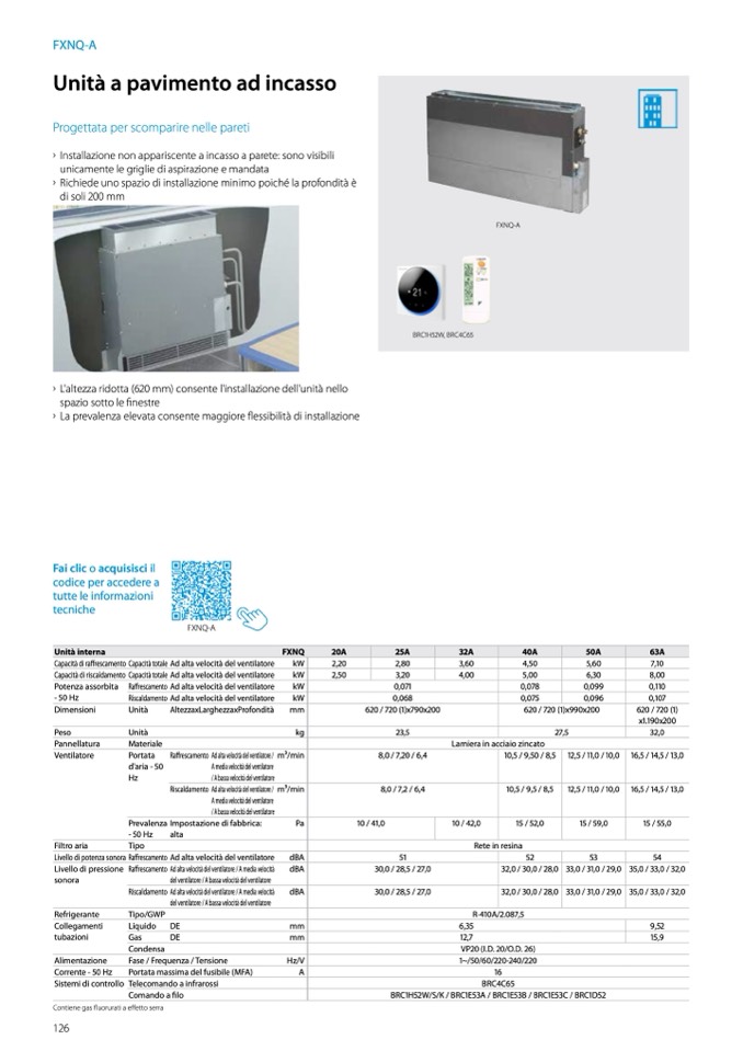 ʯ L'altezza ridotta (620 mm) consente l'installazione dell'unità nello