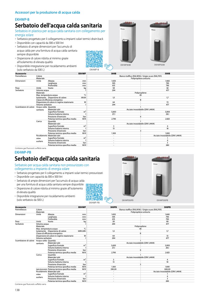 ʯ Disponibile con capacità da 300 e 500 litri