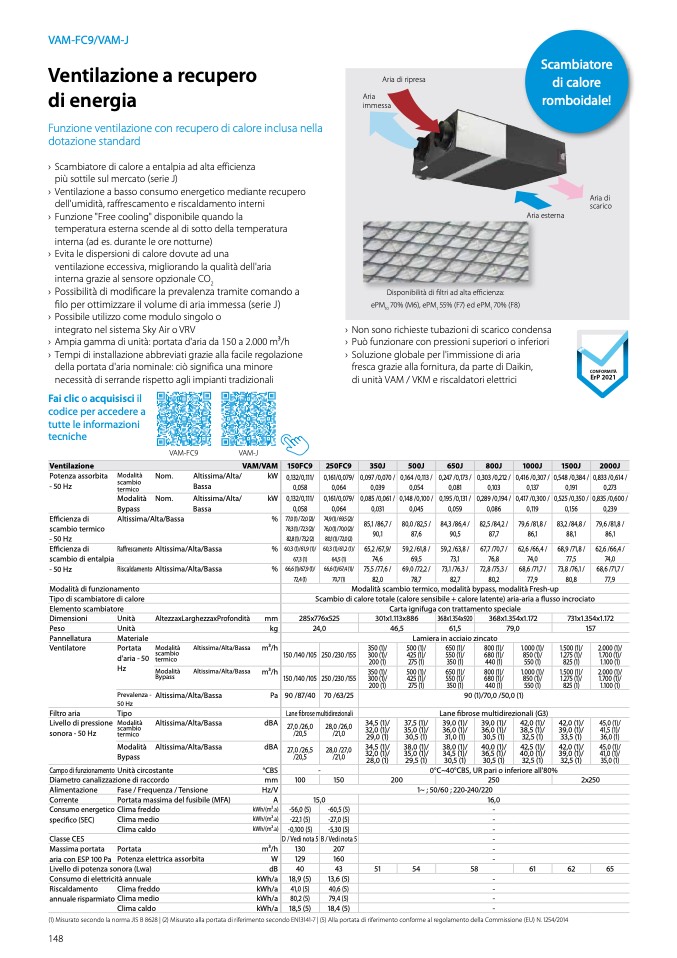 (1) Misurato secondo la norma JIS B 8628 | (2) Misurato alla portata di riferimento secondo EN13141-7 | (5) Alla portata di riferimento conforme al regolamento della Commissione (EU) N. 1254/2014