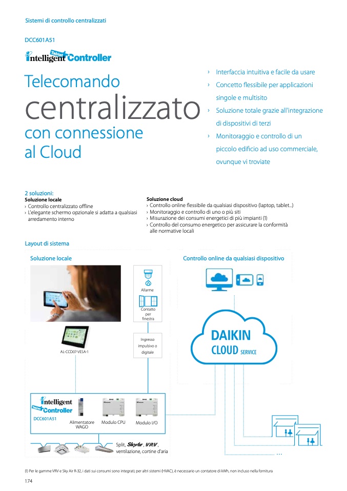 (1) Per le gamme VRV e Sky Air R-32, i dati sui consumi sono integrati; per altri sistemi (HVAC), è necessario un contatore di kWh, non incluso nella fornitura