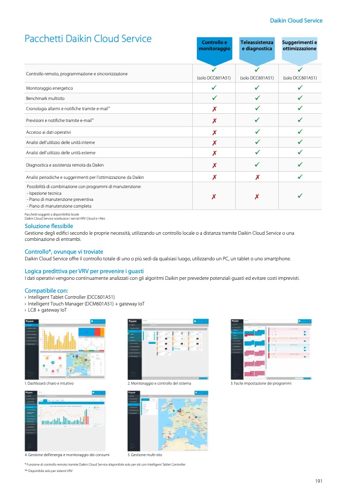 * Funzione di controllo remoto tramite Daikin Cloud Service disponibile solo per siti con Intelligent Tablet Controller