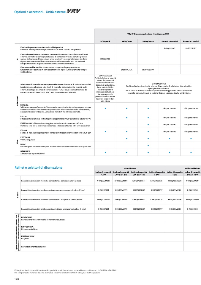 (1) Per gli impianti con requisiti antincendio speciali, è possibile sostituire i materiali isolanti utilizzando i kit EKHBFQ1 e EKHBFQ2.