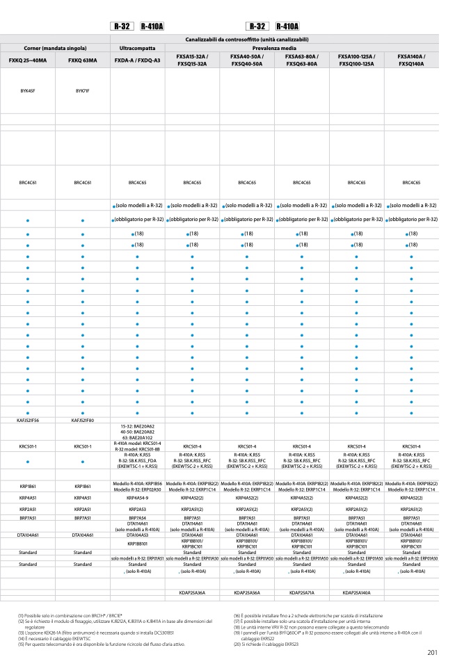 (19) I pannelli per l’unità BYFQ60C4* a R-32 possono essere collegati alle unità interne a R-410A con il