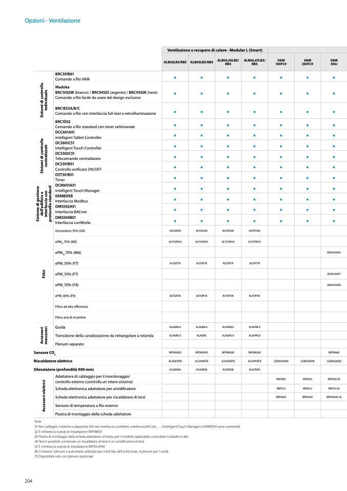 (7) Disponibile solo con plenum opzionale