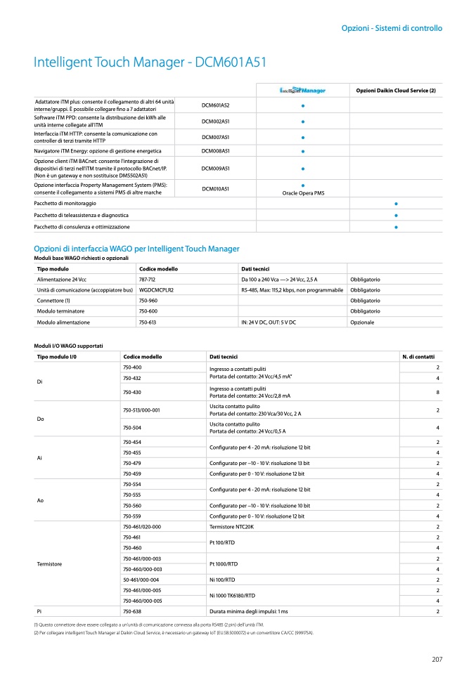 (2) Per collegare intelligent Touch Manager al Daikin Cloud Service, è necessario un gateway IoT (EU.SB.5000072) e un convertitore CA/CC (999175A).