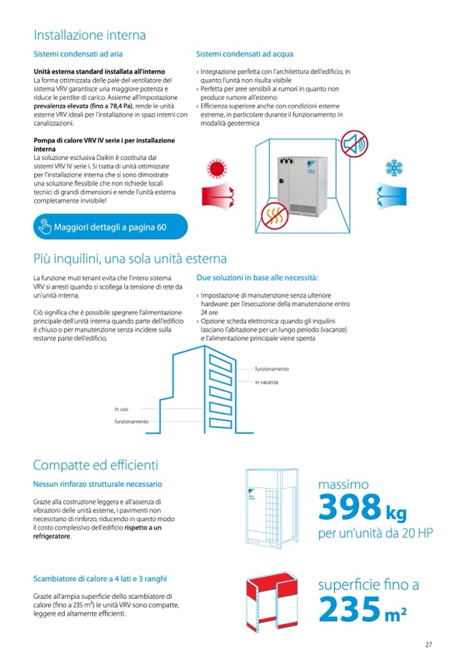calore (fino a 235 m2) le unità VRV sono compatte,