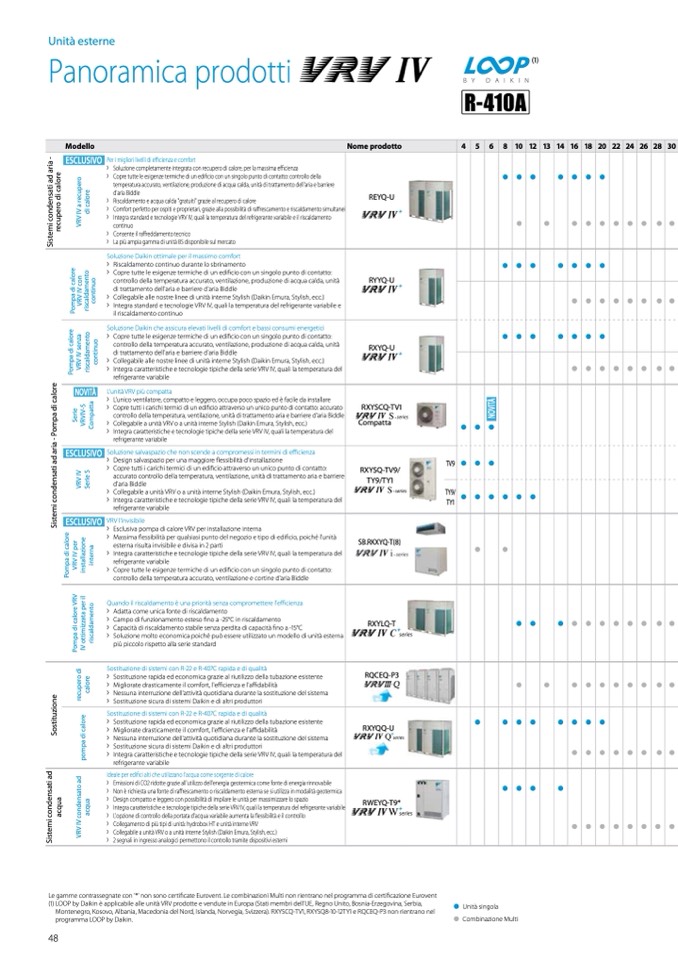 Le gamme contrassegnate con '*' non sono certificate Eurovent. Le combinazioni Multi non rientrano nel programma di certificazione Eurovent