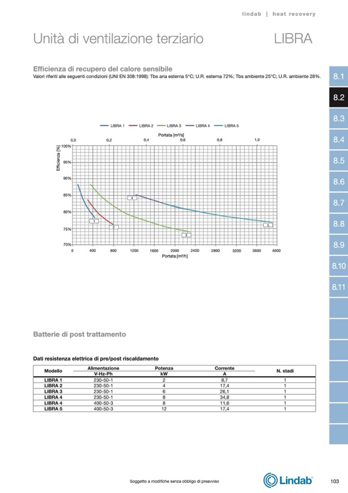 Valori riferiti alle seguenti condizioni (UNI EN 308:1998): Tbs aria esterna 5°C; U.R. esterna 72%; Tbs ambiente 25°C; U.R. ambiente 28%.